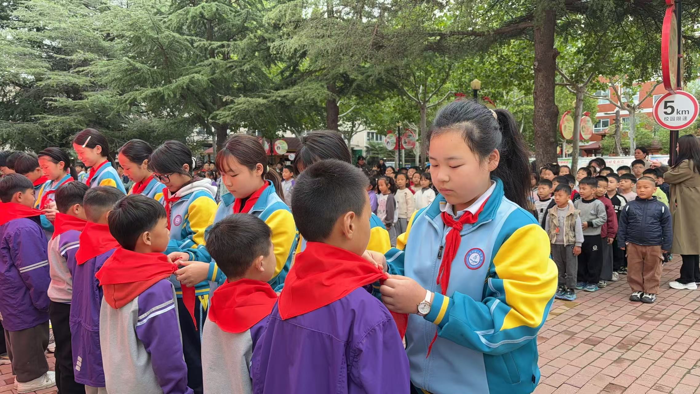 仪式现场庄重而温馨。伴随着雄壮的出旗曲,少先队旗手迈着整齐的步伐入场,全体师生肃立致敬。老队员们手持鲜艳的红领巾,郑重为新队员佩戴红领巾。当红领巾飘扬在胸前时,新队员们眼神中满是激动与自豪,纷纷挺直腰板,以标准的队礼回应这份荣誉。