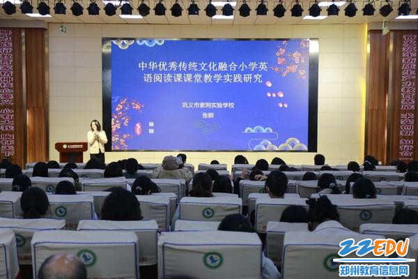 巩义市紫荆实验学校英语教研组长张鲜作题为《中华优秀传统文化融合小学英语阅读课课堂教学实践研究》的专题报告,系统阐释了团队深耕实践后的文化与教学融合路径:以主题为引领整合文化资源、探寻文化内涵;以语篇为依托深化文化学习、增强文化认同;聚焦文化意识优化教学目标、基于英语学习活动观设计递进式语言实践活动;以课外阅读为资源拓展文化学习空间,同时融合学科优势创新文化表达形式。未来,团队将继续深化“英语+文化”特色模式,推动“中国故事”与“国际表达”深度融合,助力学生成为中华优秀传统文化的传承者与传播者。