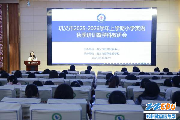 为深化小学英语课堂教学改革,全面提升五年级、六年级英语教学质量,搭建教师专业成长的交流平台,11月12日,巩义市一场以“聚焦核心素养 融合文化育人”为主题的2025-2026学年上学期小学英语秋季研训暨学科教研活动在巩义市紫荆实验学校举行。巩义市教师发展中心副主任、巩义市紫荆实验学校党总支书记赵晓红出席活动,150余名巩义市小学五、六年级英语教师参加活动。