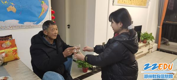 学生给长辈端茶,以表孝心