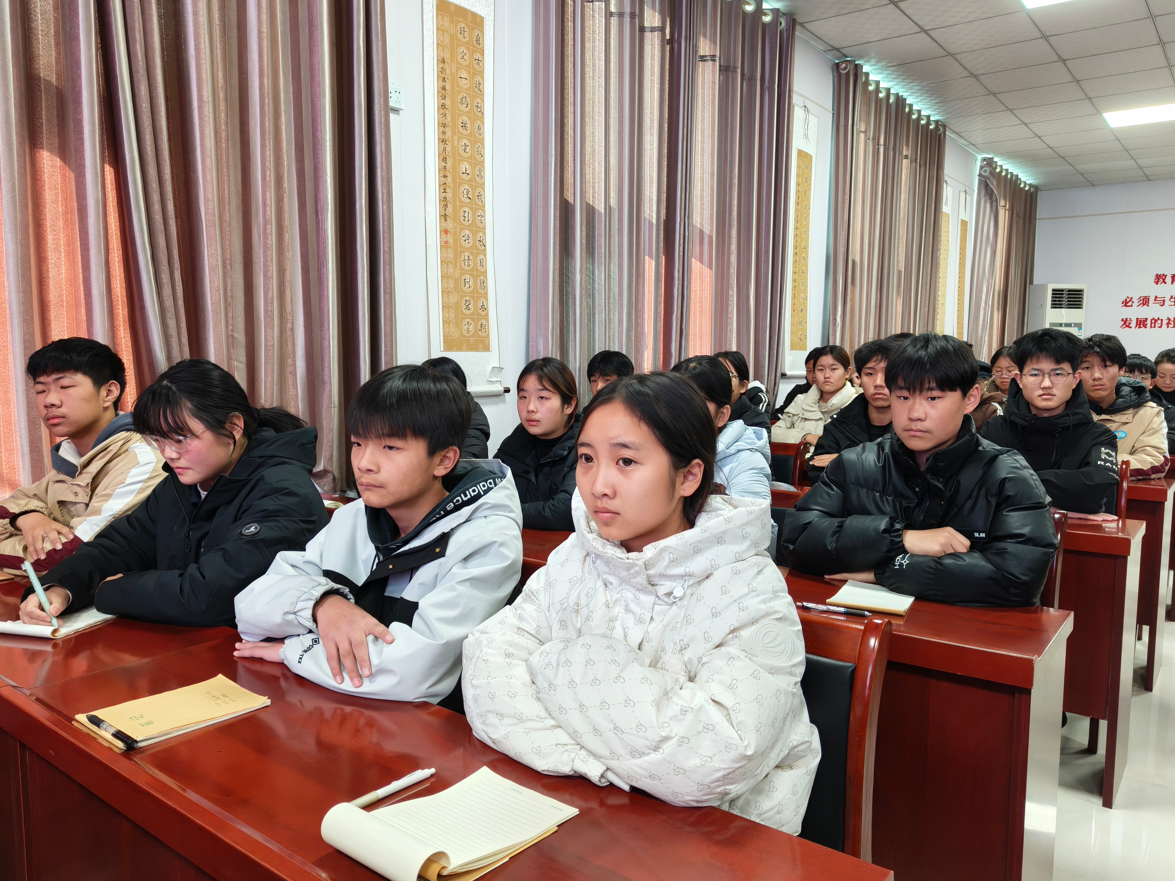 巩义市康店镇初级中学学生认真倾听思政课