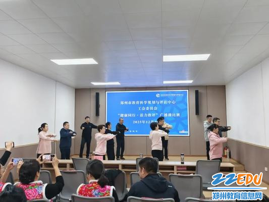 为迎接2026年元旦的到来,丰富职工文化生活,增强团队凝聚力,12月30日上午,郑州市教育科学规划与评估中心(以下简称“郑州市教评中心”)工会举办了“健康同行·活力教评”广播操比赛。本次活动以科室为单位组队参赛,全体职工踊跃参与,在团结协作、活力四射的氛围中,共同完成了一场精彩纷呈的全员健身展示。