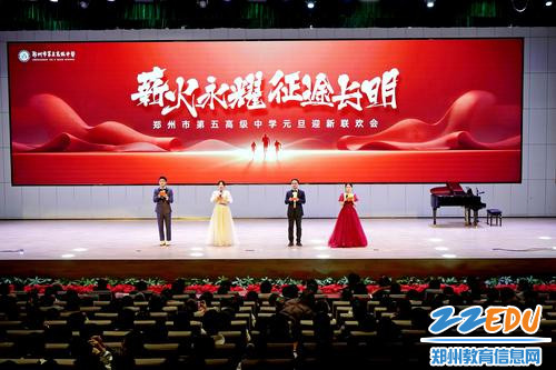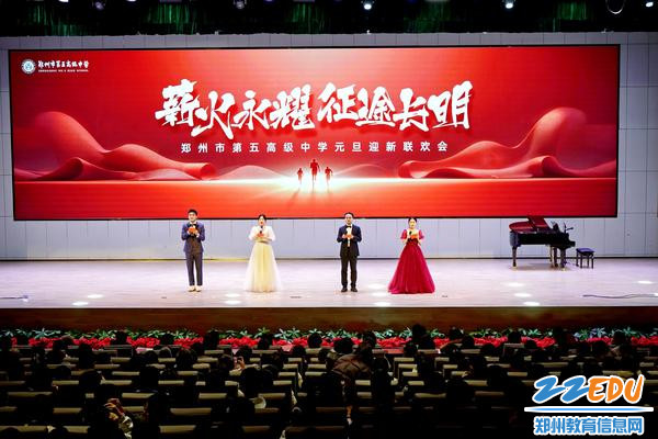 辞旧迎新启华章,师生同乐庆元旦。2025年12月31日下午,郑州市第五高级中学明珠艺术中心举行2026年元旦迎新联欢会。学校千余名师生、家长代表共赏文艺盛宴,共话美好未来。