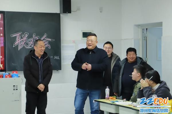 郑州市第十六高级中学校长王彦荣在元旦联欢会上为全校师生送新年祝福
