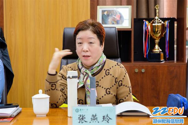 交流指导环节,专家组对学校教师发展工作及工作室建设展开专业指导。北京师范大学文学院国学教育研究推广中心主任张燕玲肯定了工作室制度完善、活动扎实、成果丰硕的特点,尤其认可读书打卡、同课异构、送教下乡等特色活动,以及在课题研究、论文发表、学生竞赛指导等方面取得的突出成绩,认为工作室充分发挥了良好的示范辐射效应,同时建议聚焦学生语文短板,强化文言文积累与古诗文鉴赏能力的制度化培养。赵岩主任建议引导教师形成个人教学专长,打造特色教学品牌,推动工作室工作与常规教学有机融合。董琦老师谈到,一线教学要对标最新课程标准,落实教学要求,推动学生学习方式的切实转变。河南省基础教育课程与教学发展中心副主任鲍聪晓肯定了学校为教师成长提供的优质平台,强调中原名师需在提升教学技能的基础上,形成自身教育观点与思想,实现教学构建的更高追求,进一步扩大辐射引领范围。