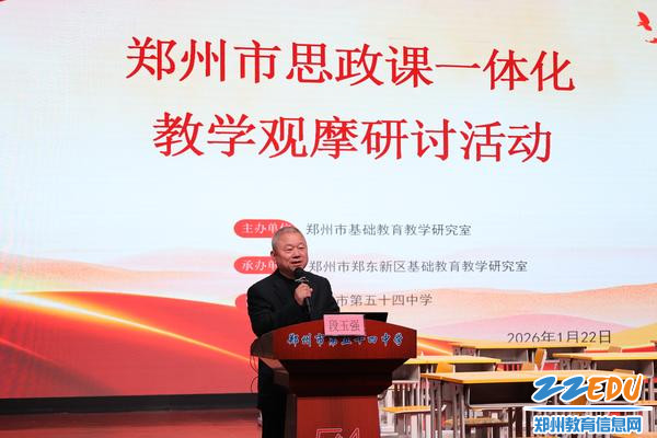 为探索“一体推进教育科技人才发展”实践路径,日前,以“科技赋能思政,共育时代新人”为主题的郑州市思政课一体化教学观摩研讨活动在郑州市第五十四中学举办。活动由郑州市基础教育教学研究室主办、郑东新区基础教育教学研究室承办,郑州市及各区县(市)思政课教研员、郑东新区中小学幼儿园业务负责人,以及全市中小学思政课骨干教师等800余人参加。