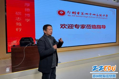 为深化“以学生为中心”理念,助力青年教师提升教学设计能力,1月29日下午,郑州市第四十四高级中学特邀全国优秀教师、特级教师、河南省名师齐华,开展《学为中心的教学设计》主题培训。学校中青年教师全员参训,现场学习氛围浓厚,培训成效良好。