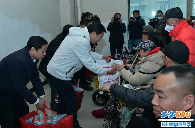 领导为残疾人代表发放慰问物资