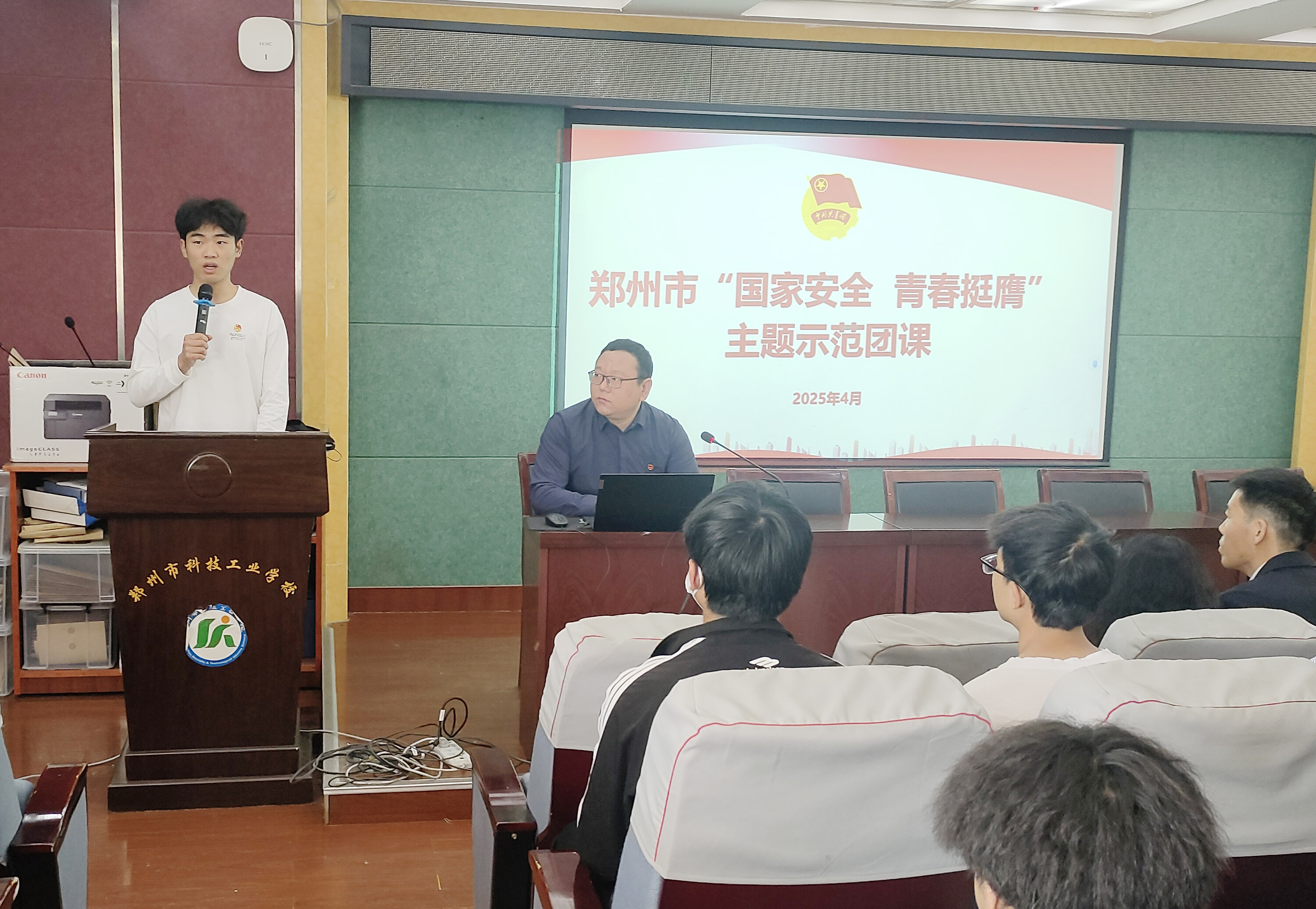 4月14日,郑州市科技工业学校举办“国家安全 青春挺膺”主题示范团课。郑州市国家安全局、共青团郑州市委、共青团金水区委相关负责同志参加活动。