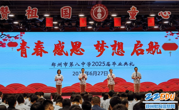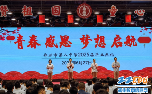 2025年6月27日下午,郑州市第八中学2025届“青春·感恩·梦想·启航”毕业典礼在学校综合体育馆举行。千余名师生家长齐聚一堂,共同见证这场盛大的青春礼赞。