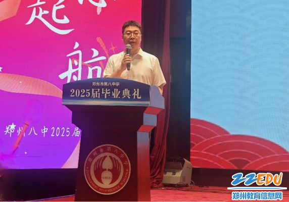 “全体起立!”随着主持人铿锵有力的号令,全场肃立。雄壮的国歌声中,毕业生们挺拔如松,目光如炬。这一刻,三年的成长与蜕变都化作胸中澎湃的激情。郑州市第八中学校长李益深情寄语:“‘人生万事须自为,跬步江山即寥廓’,同学们,今天我们以你们为荣;未来,我们更期待听到你们在各自领域奏响的华章。”