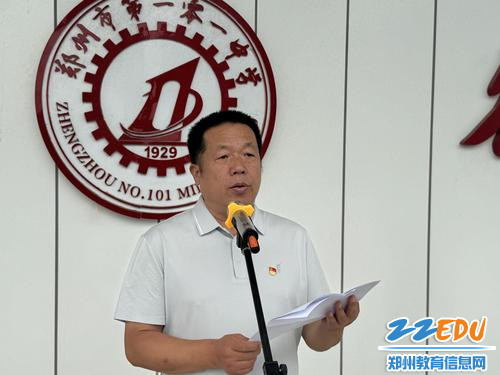 为庆祝中国共产党成立104周年,激发师生爱国爱党情怀,传承红色基因,6月30日上午,郑州市第一〇一中学举行主题升旗仪式。学校党委书记李国喜发表主题演讲,全校师生共同参与。