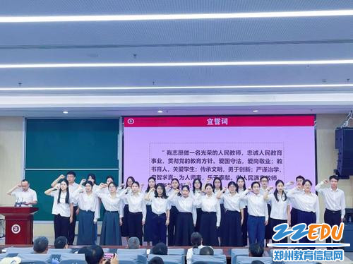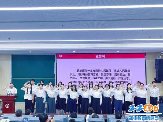 会议伊始,举行了庄重的新任教师入职宣誓仪式。张方炜依次介绍了新任教师的个人基本情况,并对他们的到来表示热烈的欢迎。在高二年级长王本丞的带领下,全体新任教师紧握右拳进行了庄严地宣誓,铿锵有力的誓言,不仅展现了他们对教育事业的坚定信仰,更彰显了十四高教师队伍薪火相传的使命担当,为学校发展注入了新鲜而强劲的活力。