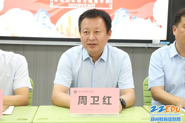 郑州艺术幼儿师范学校党委书记周卫红作总结发言。他明确学校对新入职青年教师的培养规划,并送上节日祝福。他提出三点要求:一要建立“双导师护航计划”,为每位新教师配备专业导师和班主任导师;二要关注教师发展需求,对接教师发展中心、学生发展中心,为教师做好后期保障,保驾护航;三要搭建“共研共促”成长平台,定期组织丰富的教育教学研讨活动,真正实现以平台赋能成长、以激励激活动力。