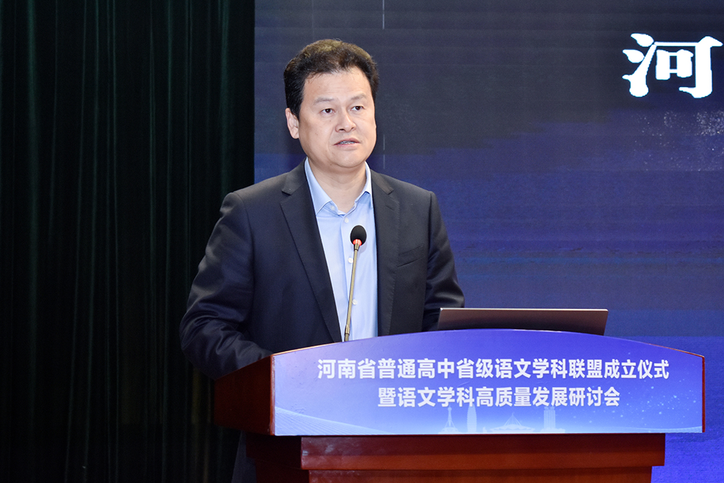 成立仪式上,河南省实验中学党委书记、校长王瑞代表联盟理事会致辞。他深情阐释了联盟校共同的教育情怀与踔厉奋发的坚定决心;河南省基础课程与教学发展中心党委书记、主任,河南省基础教育质量检测中心主任赵阳热烈祝贺联盟成立,他希望联盟能成为教学改革的“试验田”、优质资源的“聚合池”、教师成长的“加油站”,真正成为引领河南高中语文教育高质量发展的“新引擎”;郑州市教育局基础教育处处长徐荣新致辞时强调,联盟既是“优势互补、帮扶共建”的聚合平台,也是教师“共研共享、共生共长”的孵化基地,更是河南语文教育高质量发展的“助推器”,郑州市教育局将全力支持联盟建设,期待其带动全市乃至全省语文教育深度联动,共同打响“河南语文教育”品牌。