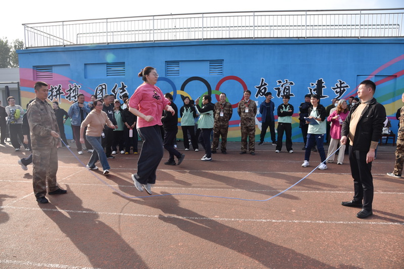 教师的跳绳赛场上老师们展现出团结协作的集体风采
