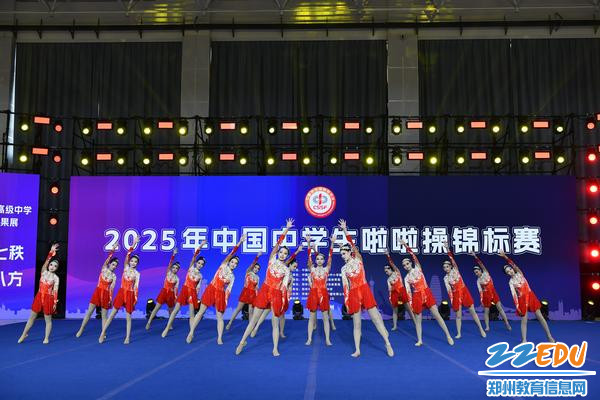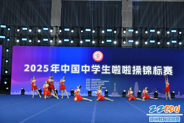在指导教师毛慧敏的带领下,郑州市第八中学代表队参加了初中组的规定爵士和自选爵士两个竞赛项目。比赛中,郑州市第八中学的队员们沉着冷静、动作规范,每一个伸展、跳跃、托举动作都精准到位。队员们神情从容、配合默契,既展示了扎实的训练功底,也传递出啦啦操运动的活力与感染力。队员们在全国舞台上的精彩表现,是她们平时刻苦训练的结果,更是郑州市第八中学坚持“五育并举”、高度重视校园体育文化建设的最佳展现。