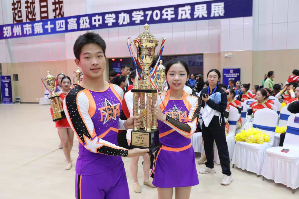 经过两天的激烈角逐,郑州市第十四高级中学最终斩获高中组团体冠军及多个单项冠军。其中,高中组(规定套路)集体技巧一级、高中组(规定套路)小团体配合技巧、高中组(自选动作)小团体配合技巧、高中组(规定动作)爵士初级B套、高中组(规定动作)街舞初级B套、高中组(自选动作)集体街舞等项目均获第一名。高中组(规定动作)花球初级B套项目获第二名。高中组(自选动作)集体爵士项目、高中组(自选动作)双人街舞项目获第三名。