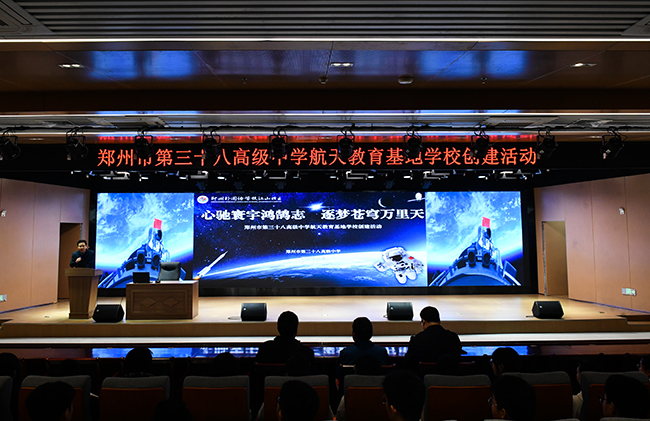 2025年11月4日上午,郑州市第三十八高级中学在郑州市教学资源保障中心指导下,举办了“心驰寰宇鸿鹄志,逐梦苍穹万里天”航天教育基地学校创建活动暨科学校长聘任仪式。全体师生齐聚报告厅,共同见证学校航天教育发展的重要里程碑。