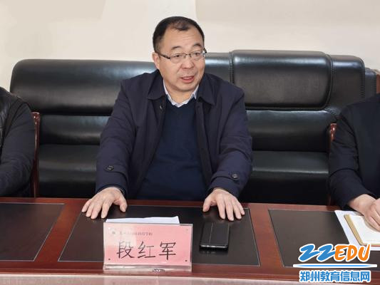 在交流座谈会上,郑州市国防科技学校校长段红军首先对郑州市经济贸易学校领导一行地到来表示欢迎,并简要介绍了该校的基本情况、办学特色以及近年来在校企合作和招生就业方面取得的成果,他强调,在当前职业教育发展的新形势下,加强校际交流与合作,共享经验与资源,对于提升职业教育质量和适应性具有重要意义。
