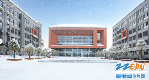 一场纷纷扬扬的大雪悄然而至,将郑州市第十六高级中学的校园装点成了一个银装素裹的童话世界。洁白的雪花如轻盈的精灵,在空中翩翩起舞,随后缓缓飘落,为教学楼、操场、树木都披上了一层厚厚的白色绒毯,整个校园宛如一幅静谧而唯美的画卷。