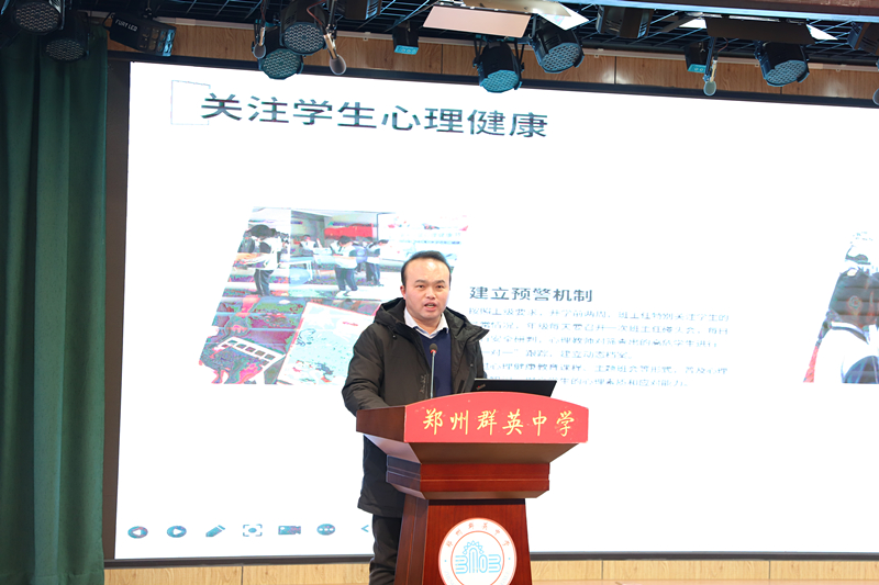 郑州群英中学副校长冯丹从“强化责任意识,压实全员安全职责”和“聚焦六大领域,筑牢安全防线”两个方面,就消防安全、心理健康、交通安全、防电信诈骗等安全教育工作作出强调,希望老师们能够明晰角色与安全责任,注重责任落实,确保校园安全无死角。