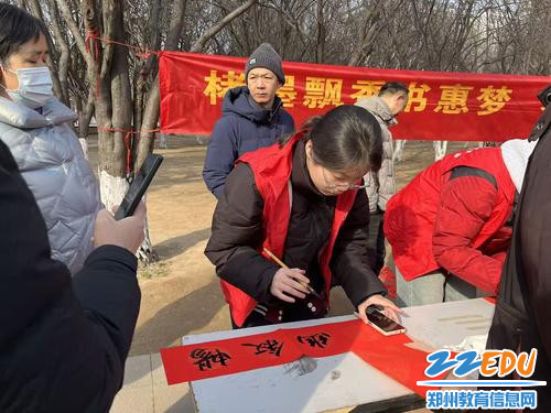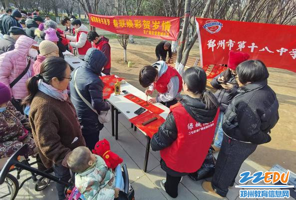 为加强文明校园与新时代文明实践站结对共建工作,弘扬“向善”校园文化,奉献爱心,践行文明,2月9日上午,郑州市第十八中学10名书法专业学生,在书法专业教师赵玉亭、学校团委书记李晓带领下,到双秀公园开展写春联、送祝福活动。本次活动,是学校联合京广路街道惠城社区,共同开展的一次公益活动。