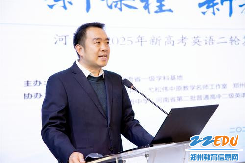 郑州市第十一中学英语省一级学科基地负责人谷战峰分享了《科技赋能高中生英语学习能力提升》,探讨了科技在英语教学中的应用,表示科技赋能可以为英语教学带来新的机遇和挑战,建议教师充分利用现代信息技术,创新教学方法,提升教学效果。