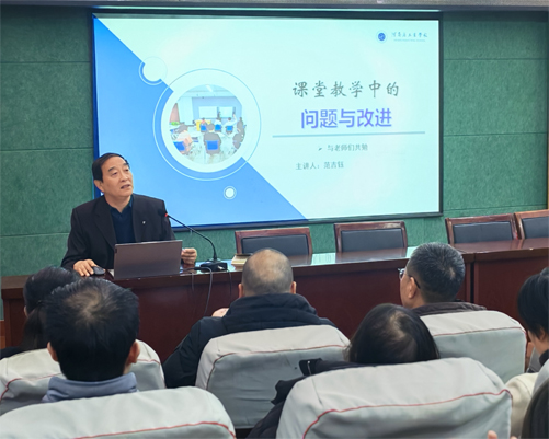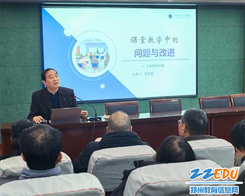 会议最后,河南省职业教育专家范吉钰作了专题讲座《课堂教学中的问题与改进》。他首先剖析了当前中职课堂教学中普遍存在的理念滞后、课堂组织不到位、课堂评价意识不够等问题。